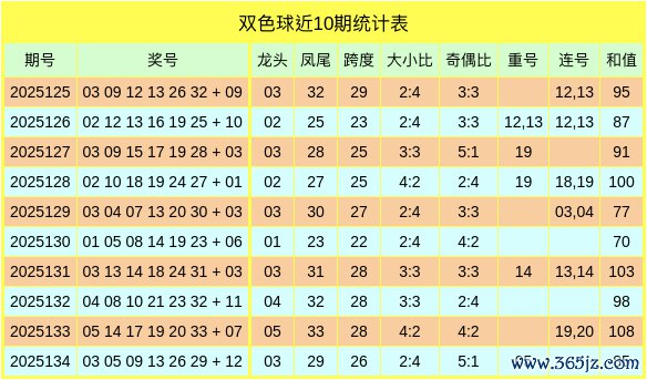 双色球第2025135期数据统计分析表