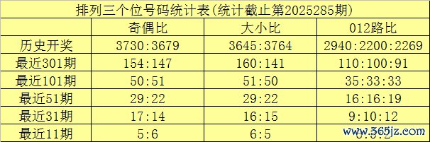 上期总结:摆设三第2025285期奖号为:905。奖号款式组六,大小比2:1,奇偶比2:1,012路2:0:1。